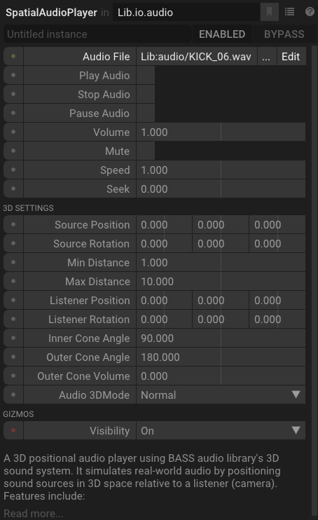 A 3D positional audio player using BASS audio library’s 3D sound system. It simulates real-world audio by positioning sound sources in 3D space relative to a listener (camera). Features include: